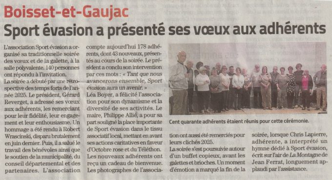 Participation record pour la soirée des voeux Ce samedi 24 janvier 2026, à 19h, l’association Sport Évasion a organisé sa traditionnelle soirée des vœux et de la…