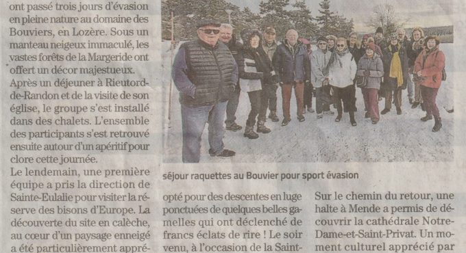 Ce séjour lozérien du 13 au 15 février s’est déroulé pour la deuxième année consécutive au Domaine des Bouviers sur le plateau de la Margeride…
