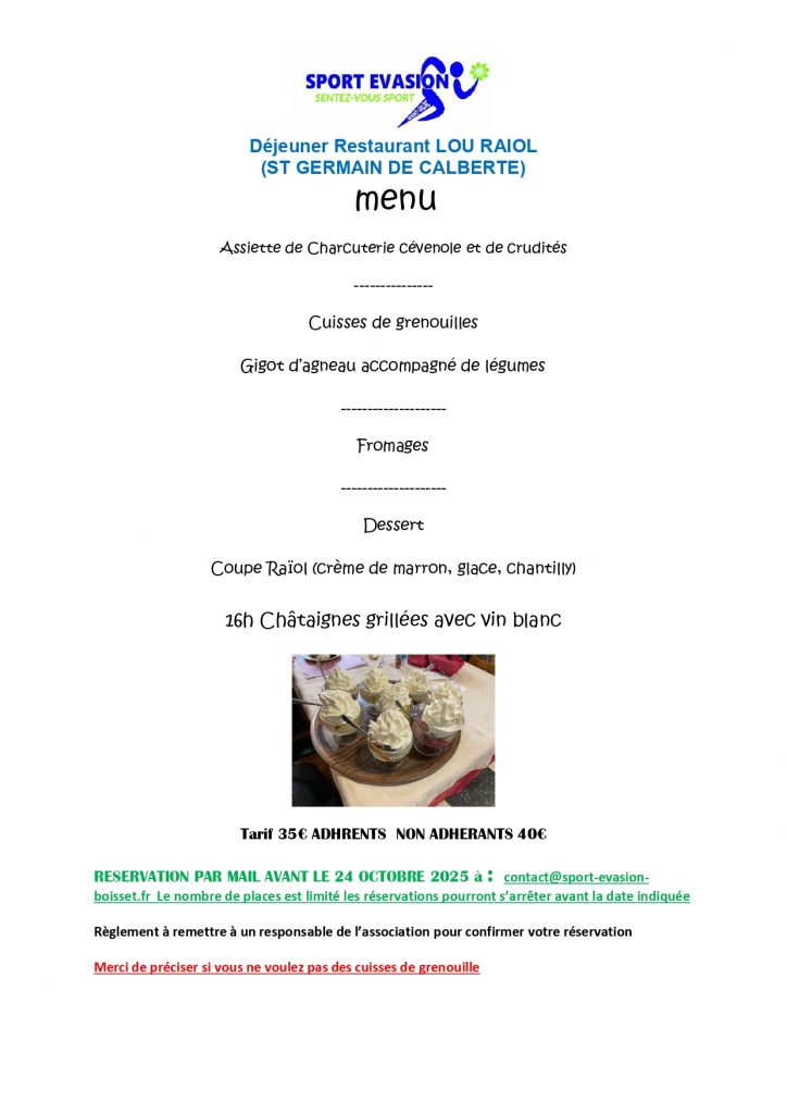 VENDREDI 31 OCTOBRE 2025 JOURNEE PLEINE NATURE REPAS AU RAIOL