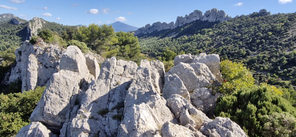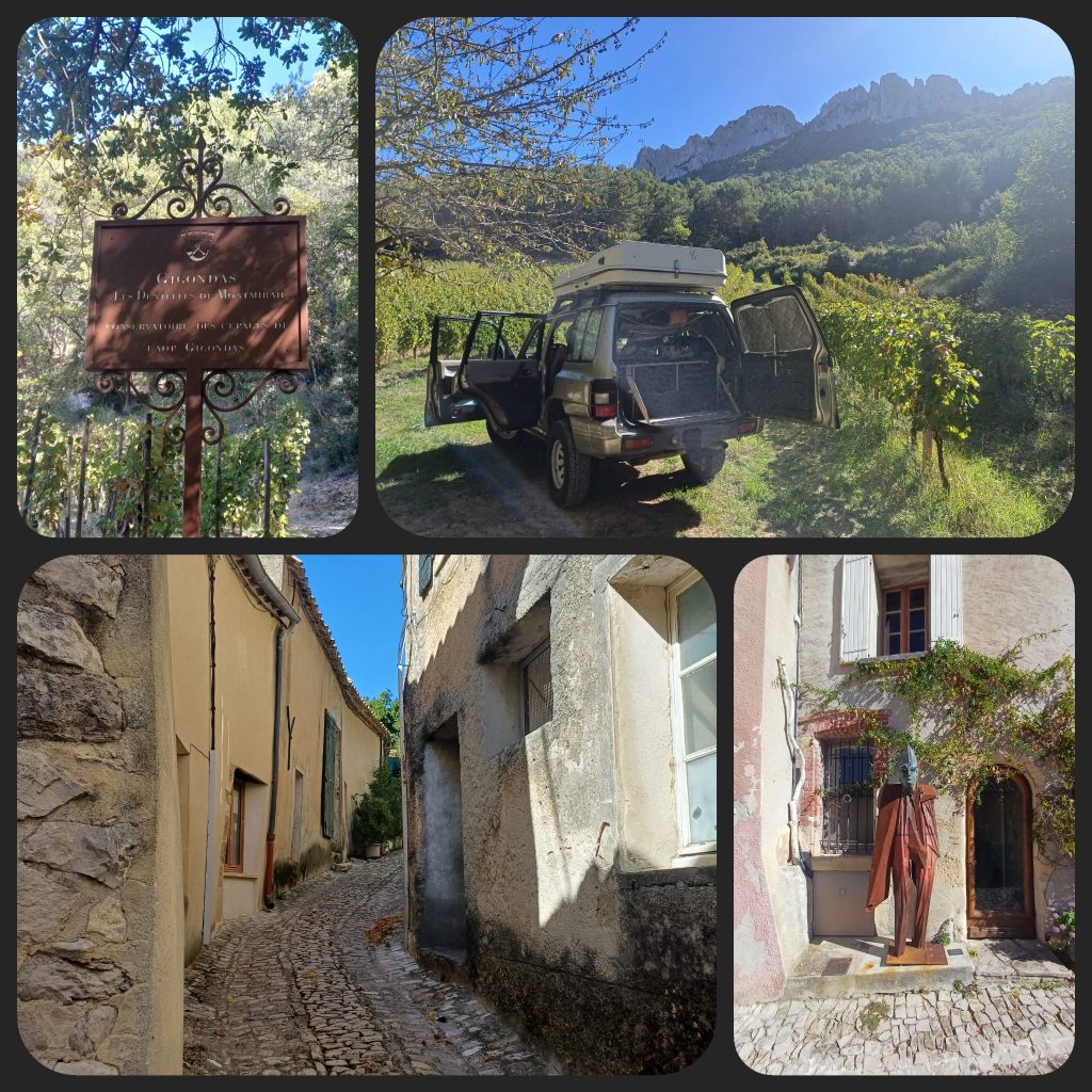 Ce dimanche 5 octobre, c’était notre première journée pleine nature aux Dentelles de Montmirail. A 9h, comme prévu, nous avons pris la direction de Beaumes de Venise pour une petite pose avant d’aller à Vacqueyras au caveau RhonéA, pour une dégustation de Côtes du Rhône.