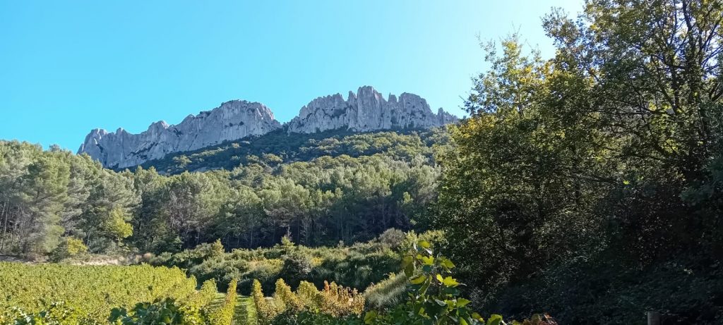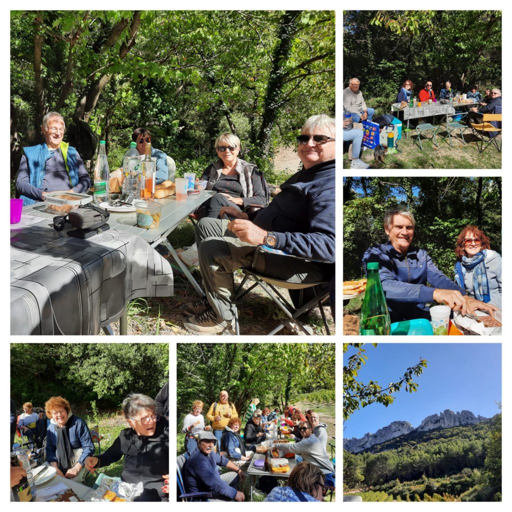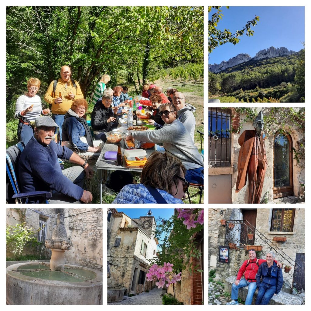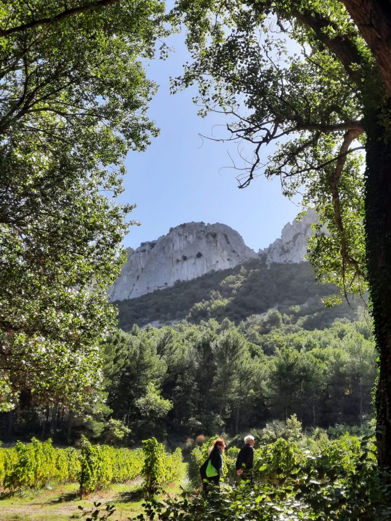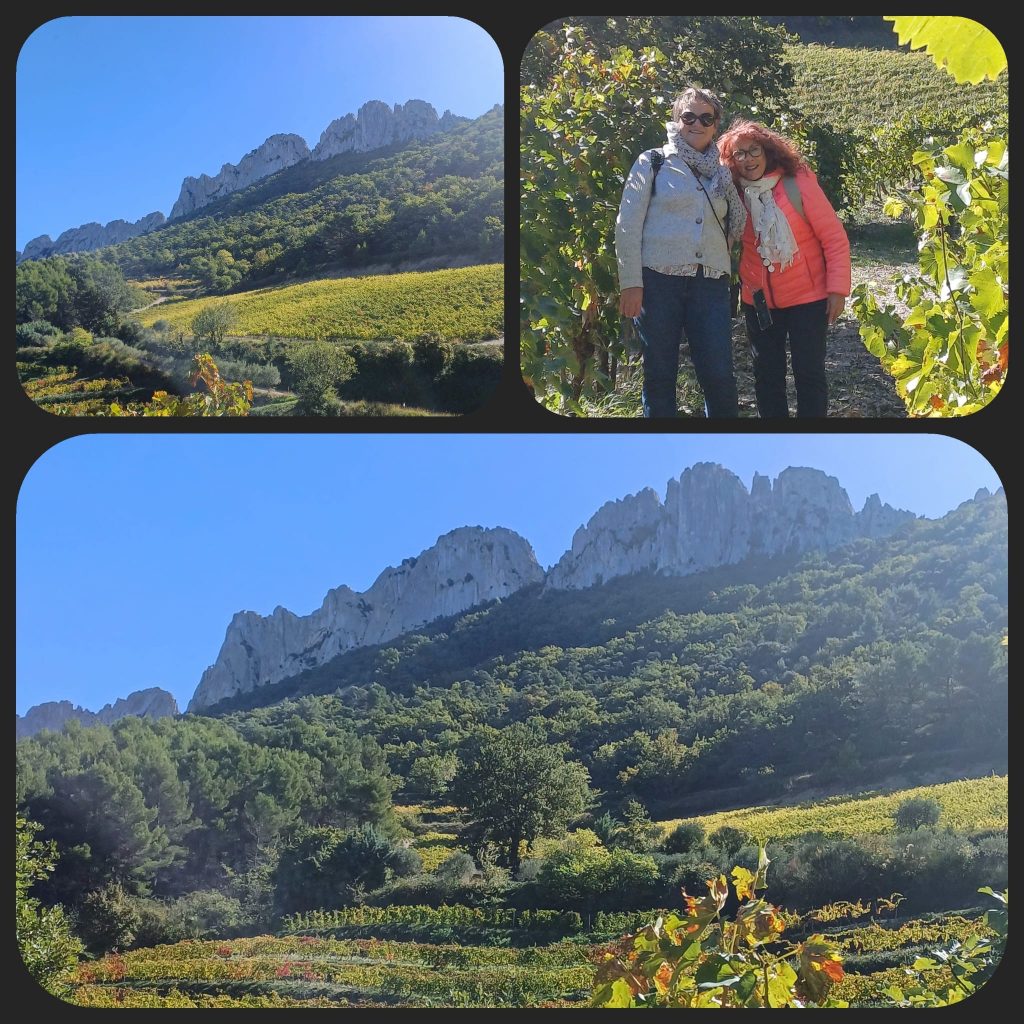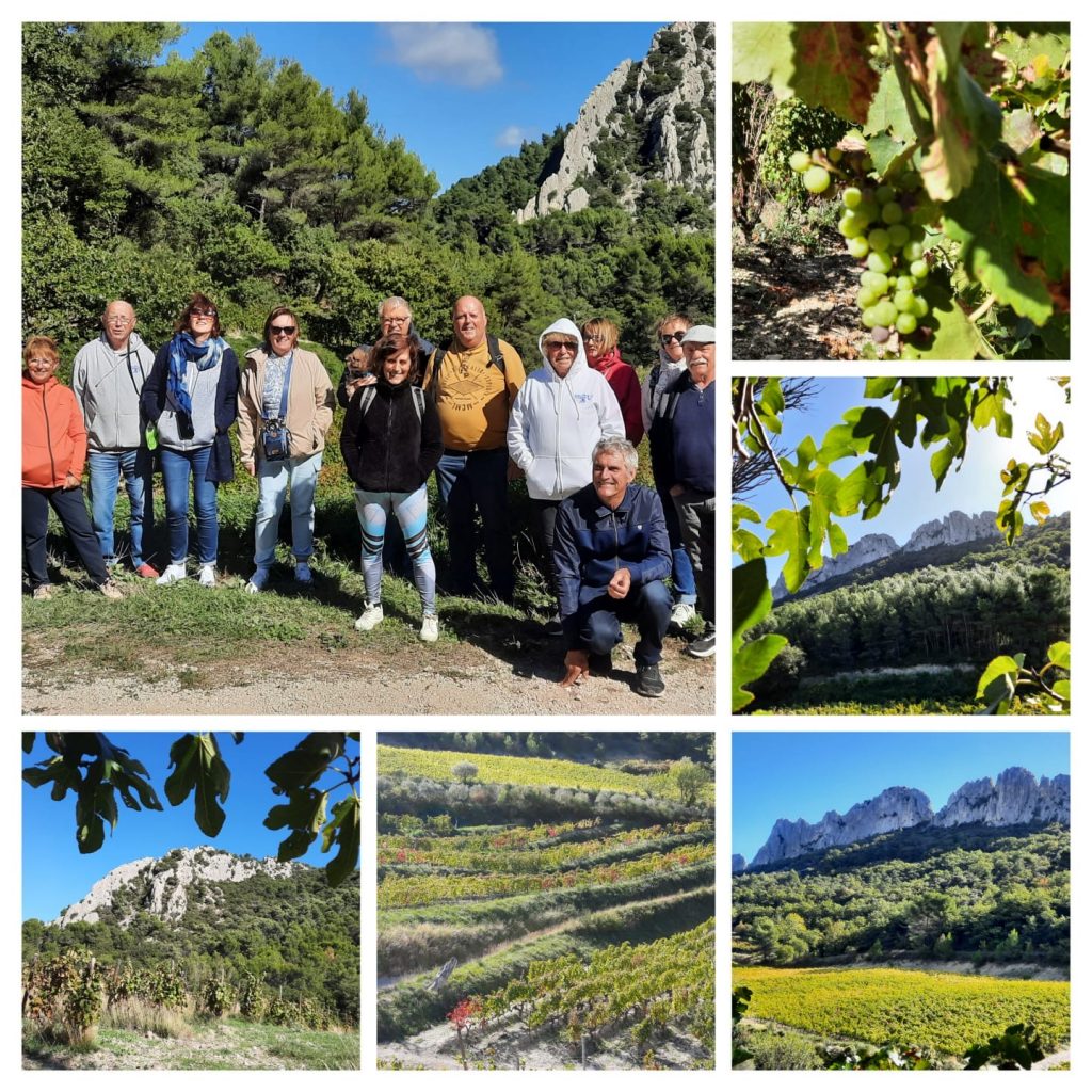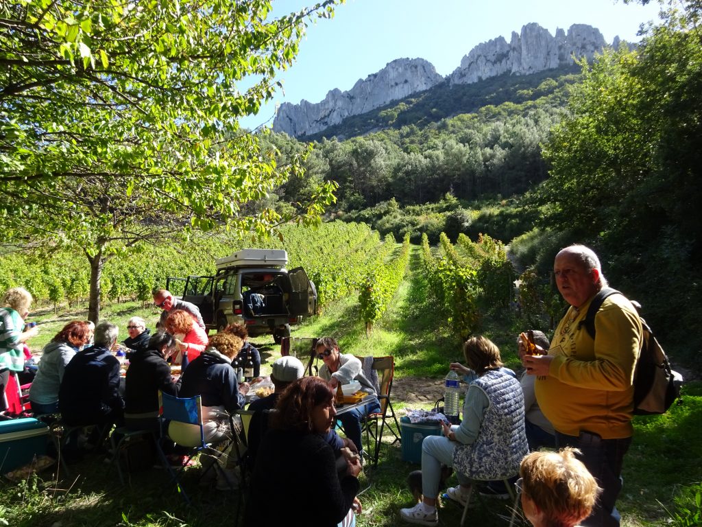 Après notre installation, un groupe est parti à l’assaut des Dentelles, tandis qu’un autre a déambulé dans le vignoble, dans les coteaux merveilleusement entretenus .