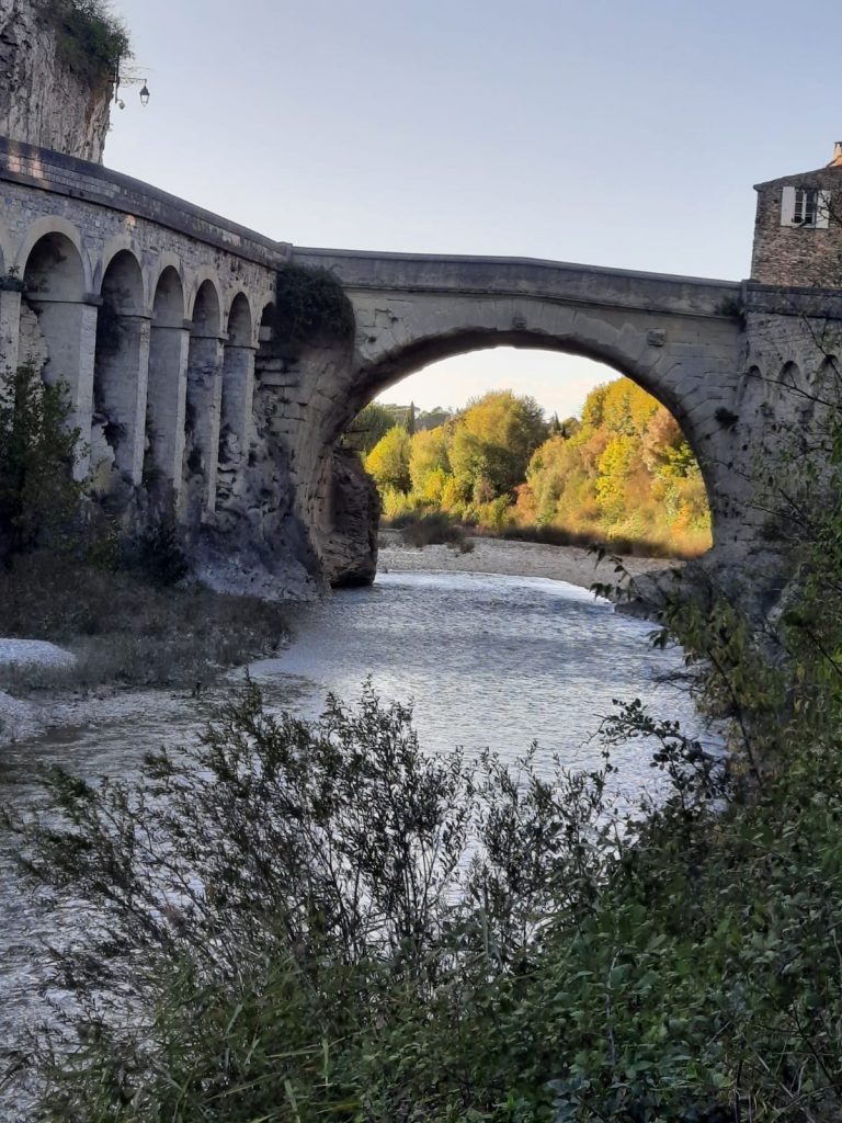 Le pont romain qui enjambe l’Ouvèze à 12,25m au-dessus.