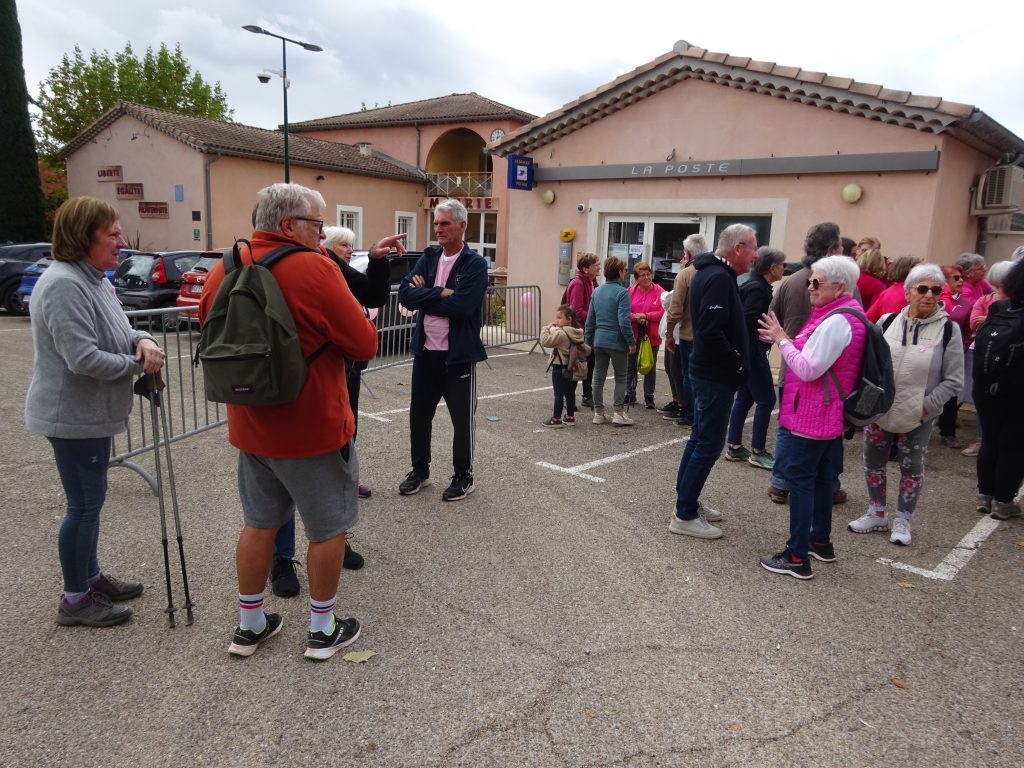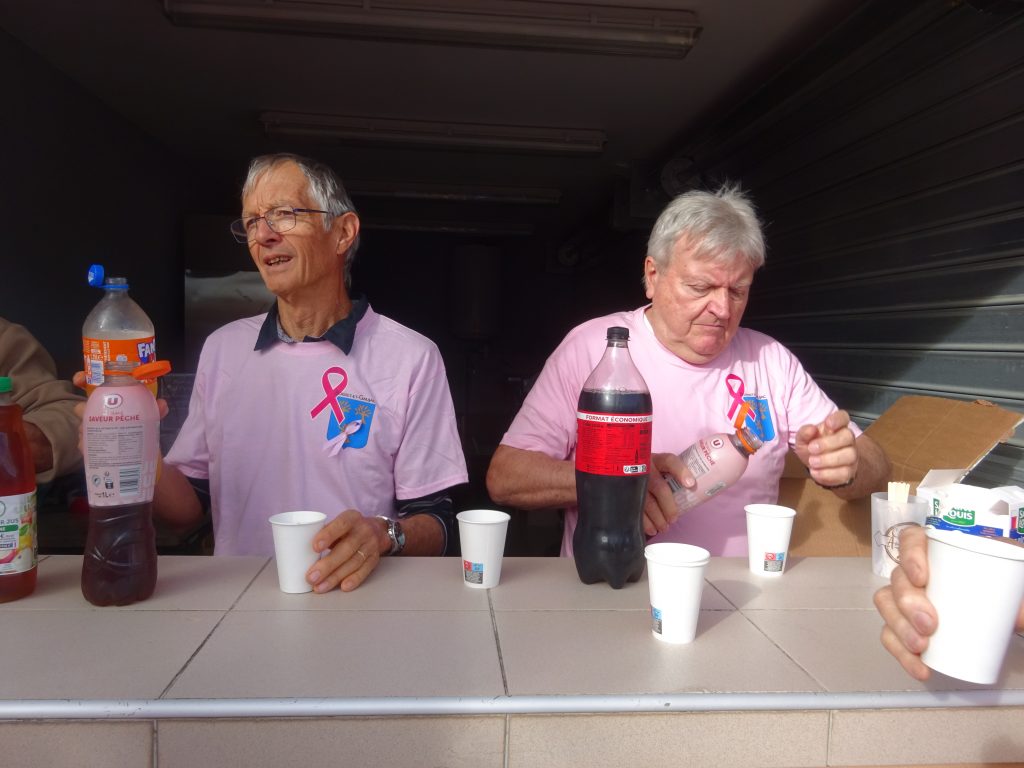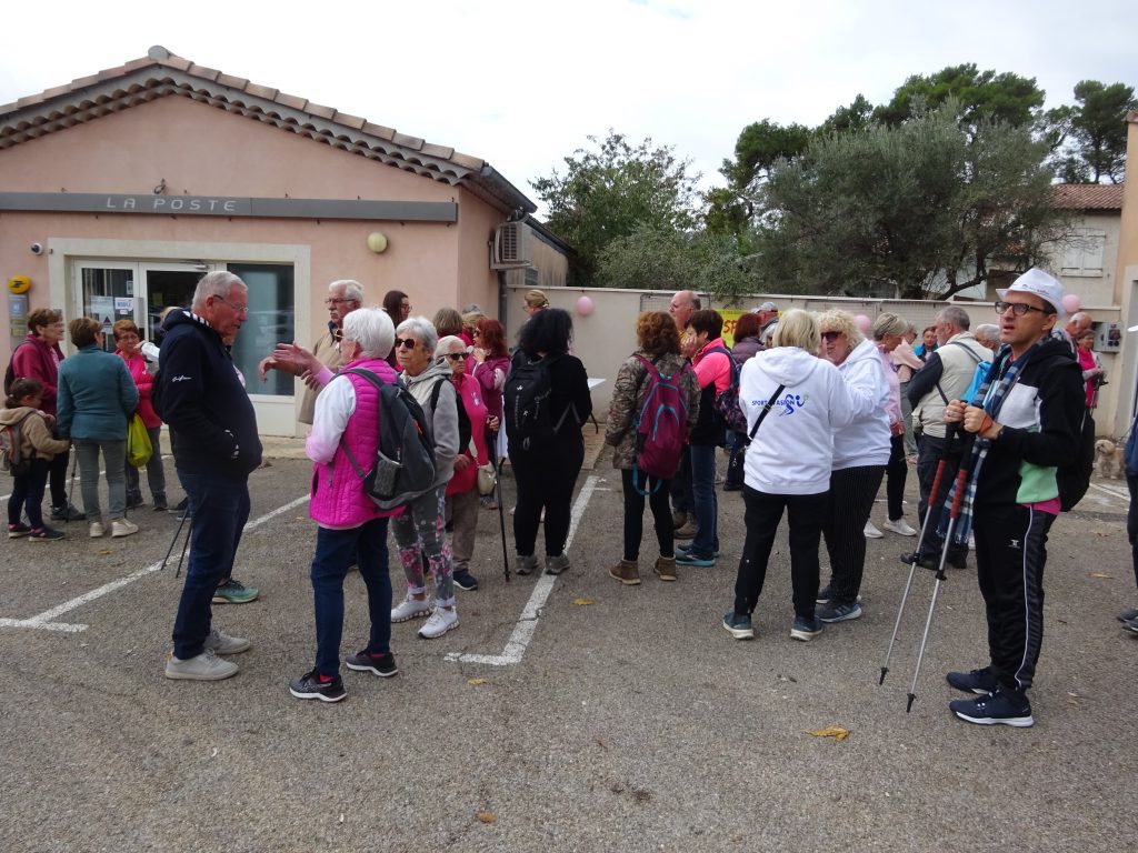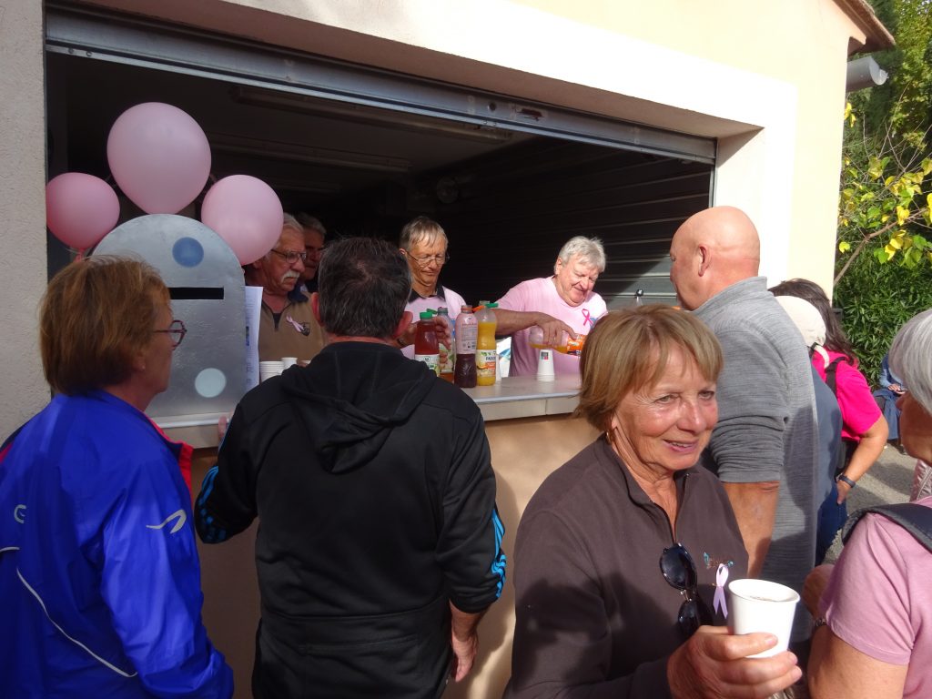 A 14h, tous les participants se sont rassemblés sur la place de la mairie, un café était offert à tous, et un ruban rose aux généreux donateurs.