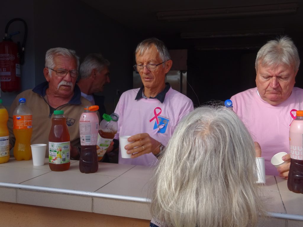 Petite collation à l’arrivée servie par André, Michel et Pascal