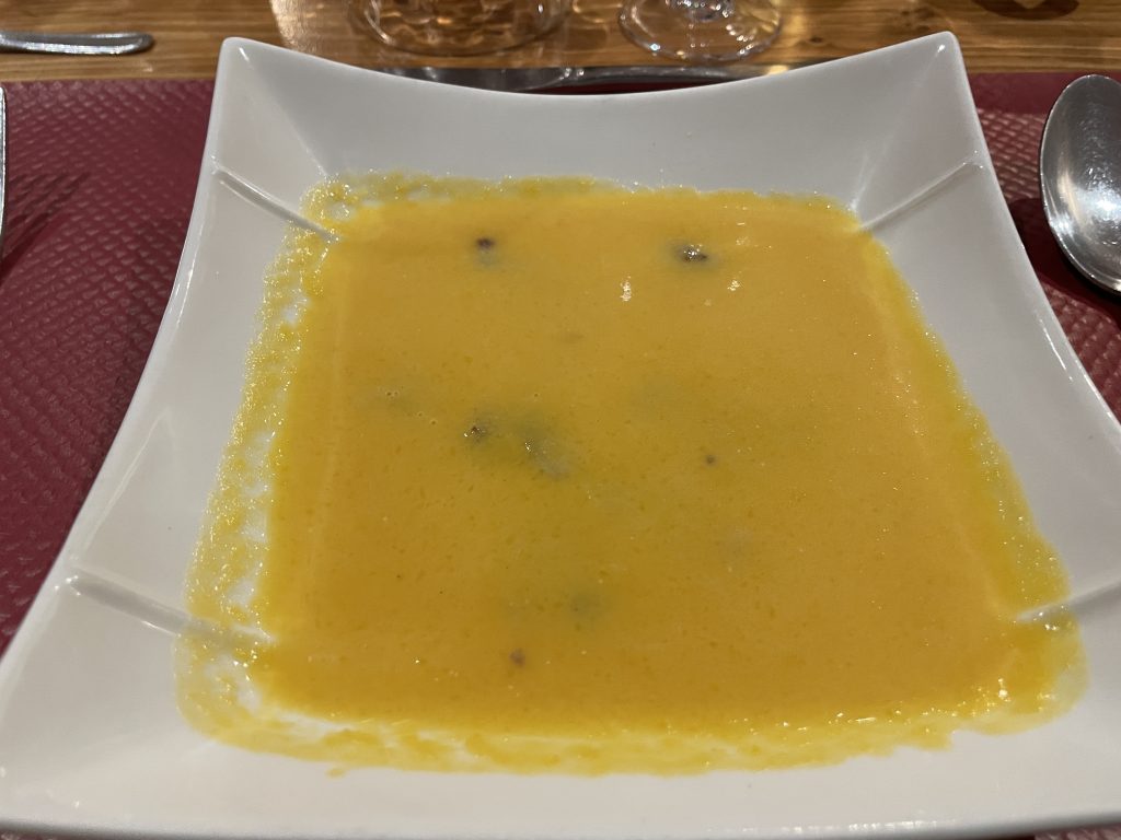 Deux entrées étaient proposées : un délicieux consommé de courge ou une assiette de charcuterie.