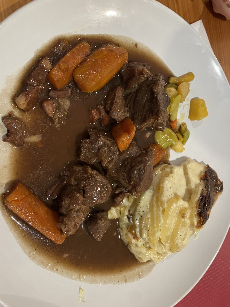 Le choix du plat principal s’est porté entre un civet de joue de boeuf goûteux et une rouille de seiche parfaitement maîtrisée.