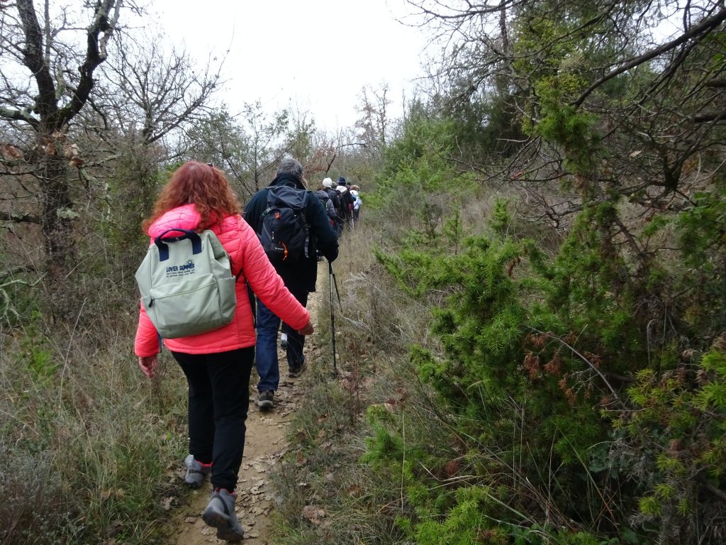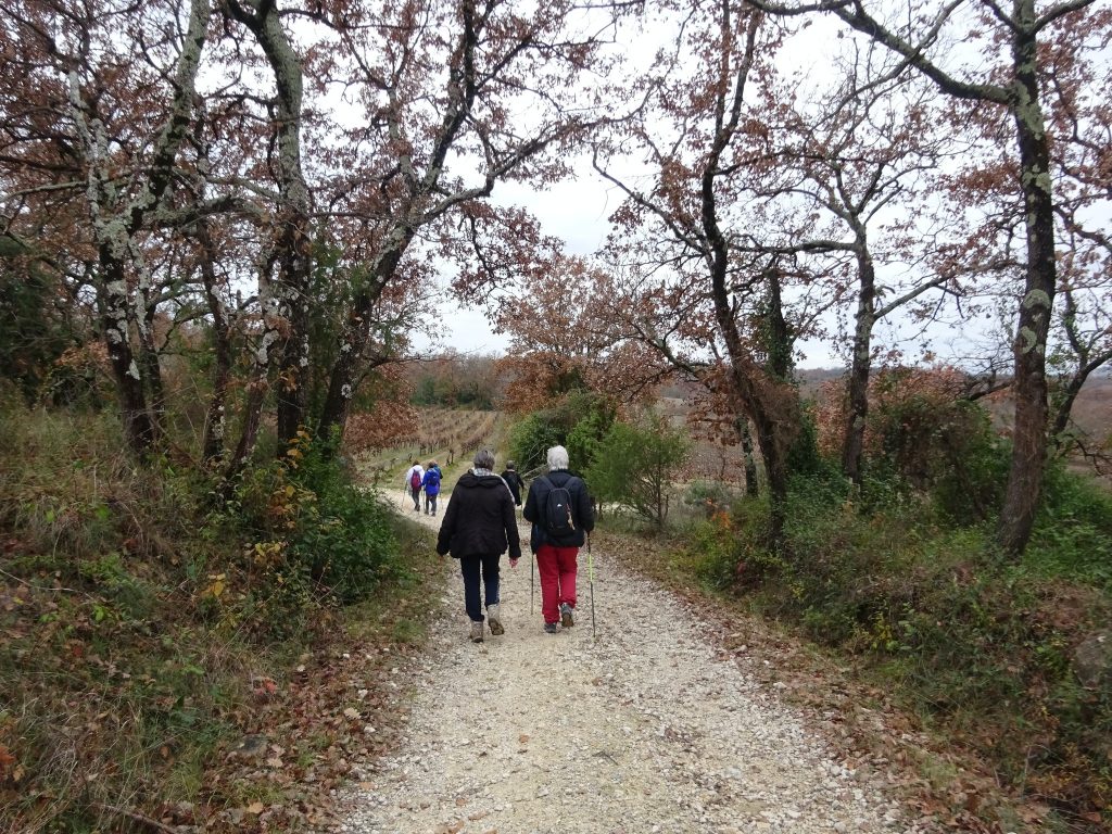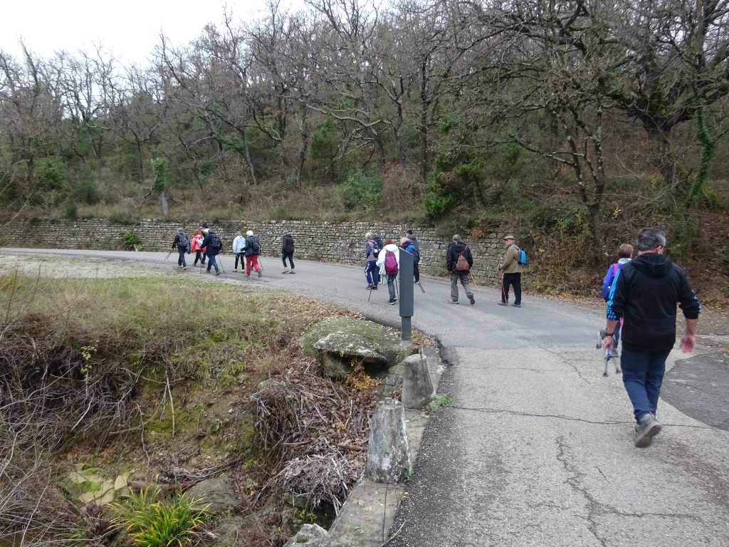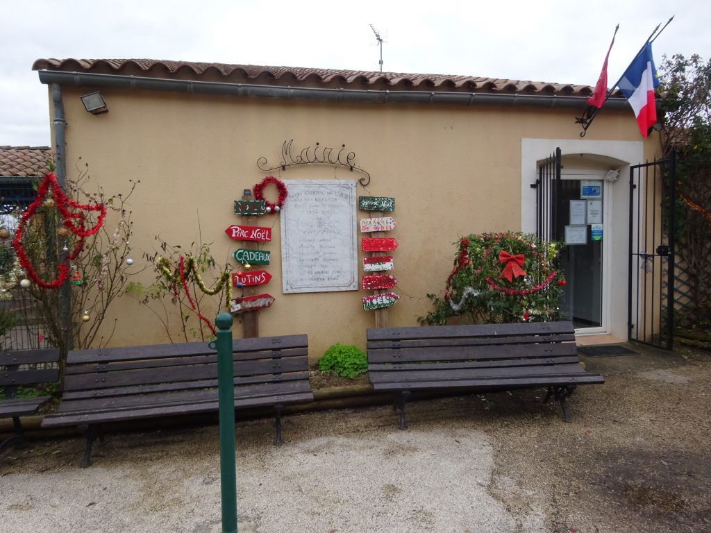 Départ de notre randonnée de la mairie de St Etienne de l’Olm, bien décorée