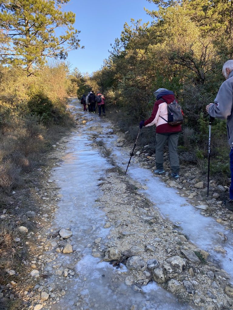 C’est à Paussan que nous avons randonné, sur les bords du Gardon, une gelée blanche bordait les rives et les sous bois. Malgré 6°C 12 marcheurs ont affronté l’air vif.