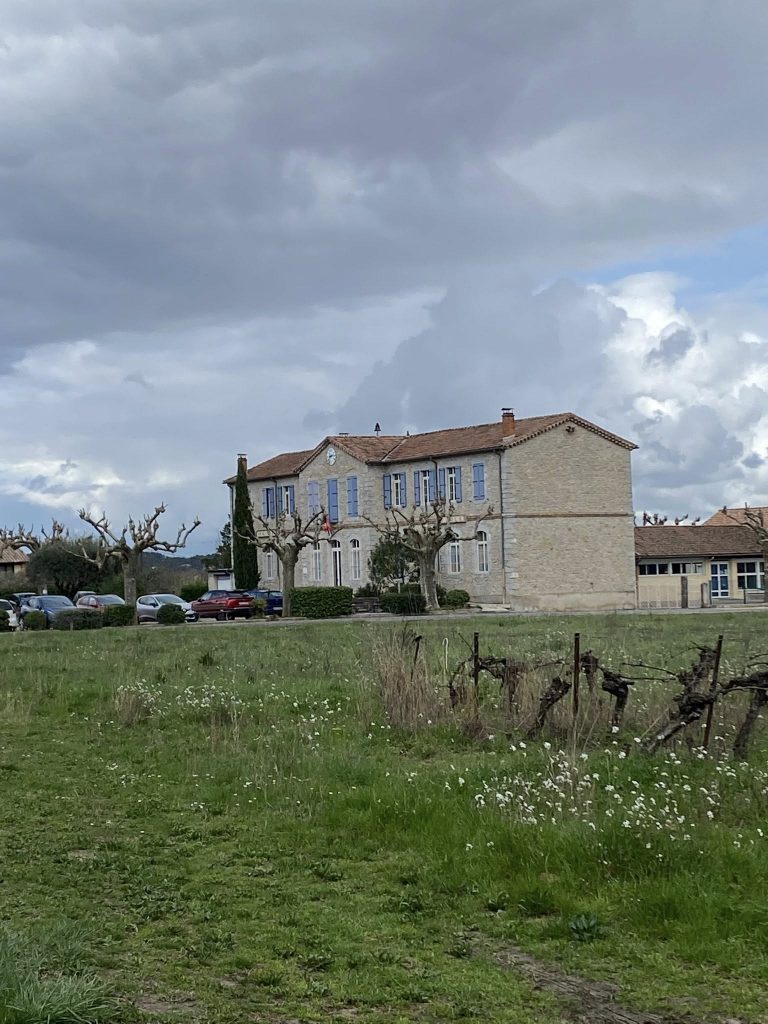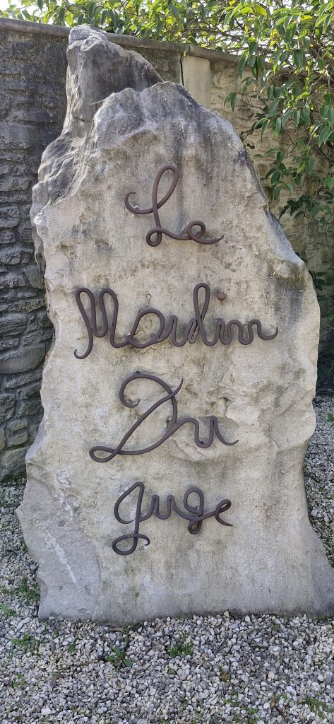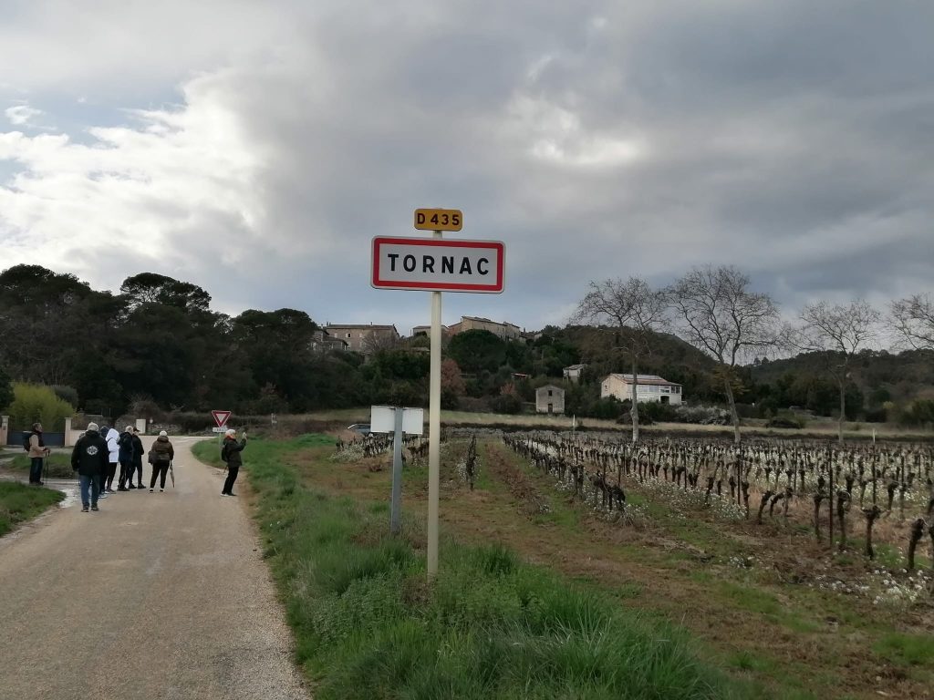 Photo devant le portail du domaine. En face la cave de Tornac , mais au grand regret de certains pas dégustation pour rester sérieux!!!!