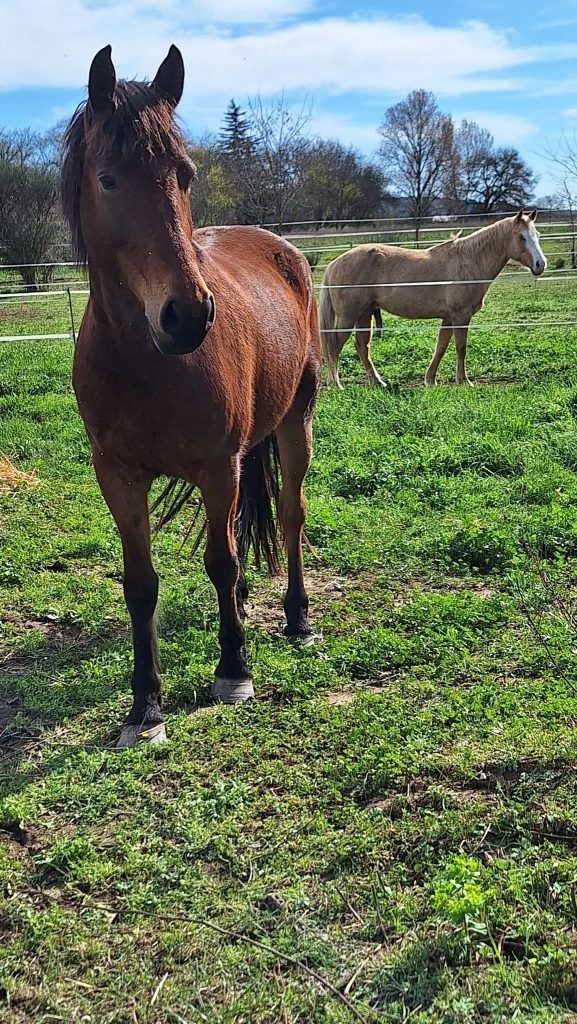 Ce beau cheval pas du tout effrayé . Adrien ravi de pouvoir l’admirer et le caresser