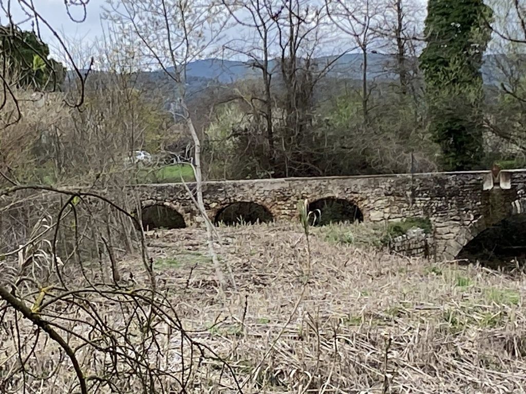 Le pont qui enjambe l ‘Ourne, beaucoup d’eau en raison des pluies récentes des derniers jours.